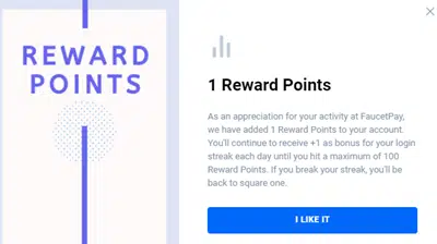 You will receive a daily login bonus every day.During your first day, the daily login bonus will be set to 1 Reward Point. This will gradually increase when you keep your streak of logging in to the site. The maximum Reward Point you will get will be 100 Reward Points.